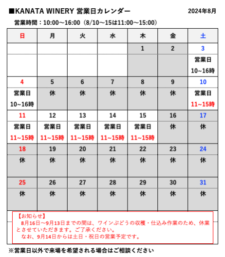 また、お盆明け8月16日(金)〜9月13日(金)までの間、臨時休業といたします。ご了承ください。